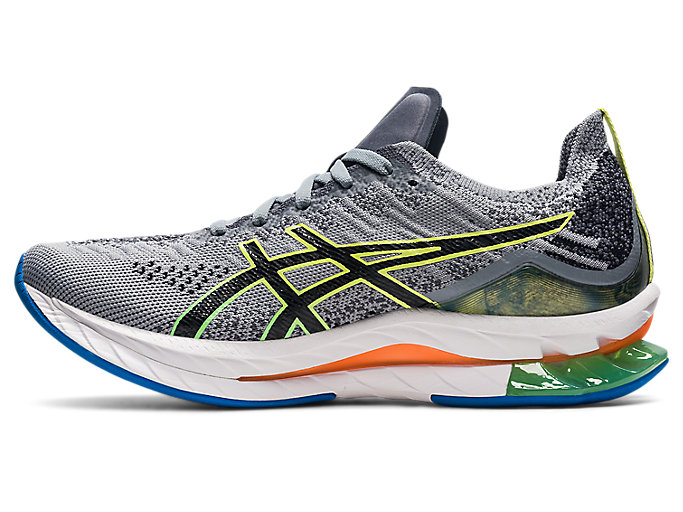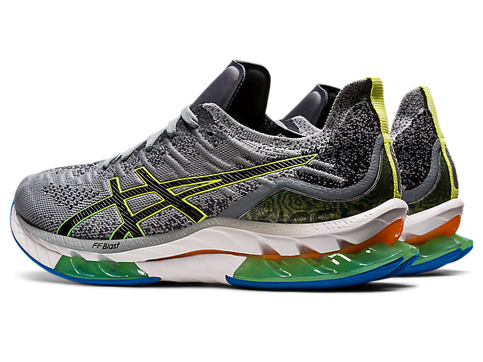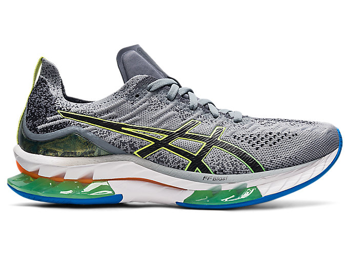The ASICS Kinsei Blast in Sheet Rock Grey and Glow Yellow blends futuristic design with high-performance tech. Featuring a responsive FF BLAST™ cushioning and GEL™ technology, it delivers a smooth, energized ride. The colorway combines sleek grey tones with vibrant yellow accents for standout style. Perfect for long-distance runners seeking both comfort and bold aesthetics.